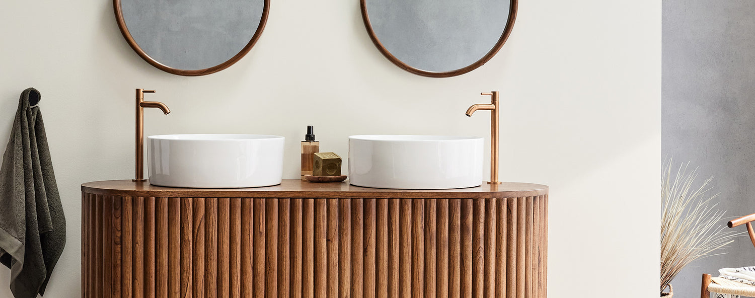 Los diseños validados, dos muebles lavabo (uno doble, otro individual) y un generoso espejo, había que elegir la madera. Una madera cálida naturalmente. Auténtica y maciza cuyas vetas nos recuerdan que ahí, bajo los lavabos, la vida ha hecho su obra y que la naturaleza tiene todo su lugar en el hogar.