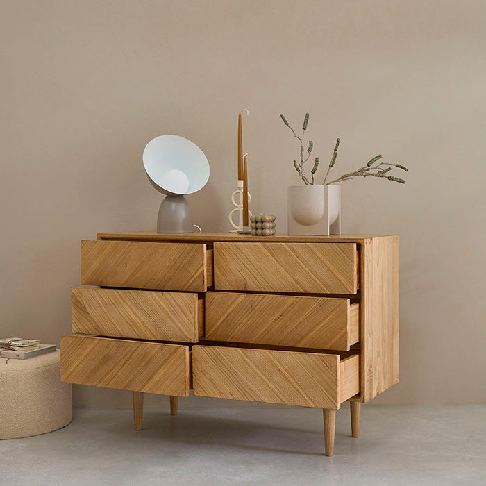 Cada mueble de esta colección PACÔME - desde el mueble de TV hasta la cómoda pasando por el aparador - encarna la belleza atemporal, ofreciendo una armonía perfecta entre tonos claros y líneas depuradas. Déjate llevar por la suavidad y la autenticidad que emanan de cada pieza, transformando tu salón en un remanso de tranquilidad.