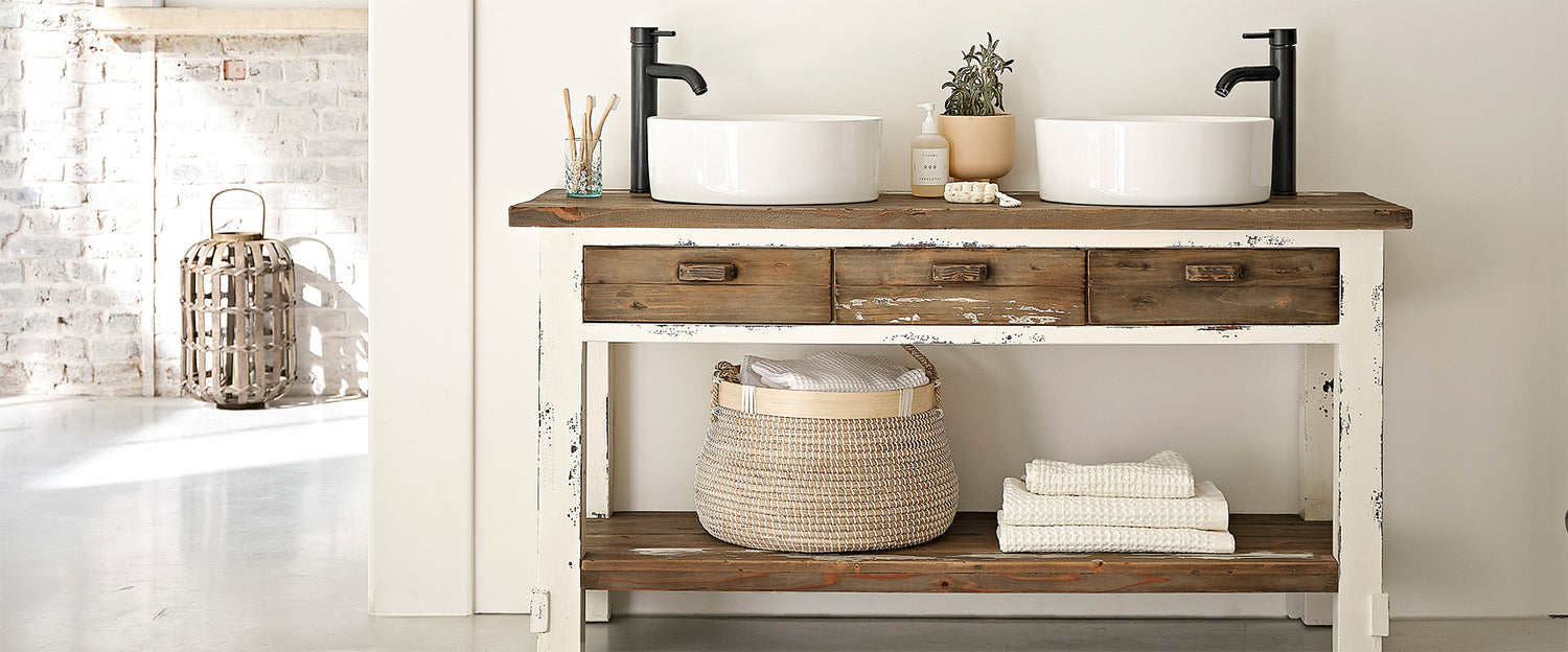 Diseñada con madera de pino recuperada de trenes, barcos, casas y a la que se quería dar una segunda vida, la colección SEZANNE y la colección ATLANTIC dominan el arte de la transformación. Mantener el aspecto patinado por la vida para dar al futuro mueble el aire de un aventurero experimentado que siempre hubiera vivido aquí, solemnidad de la casa, lo que le confiere un encanto loco que quisimos, por contraste, asociar con las sobrias curvas de nuestros elegantes lavabos de baño.