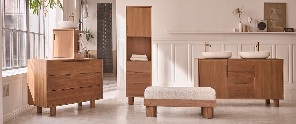 Las maderas proceden de lugares donde su renovación está garantizada. Nuestros talleres velan por una producción ética. Y siempre damos preferencia a maderas especiales, como la de pino y teca reciclada procedente de embarcaciones o trenes, lo cual, además de moderar el uso de materias primas, imprime en nuestros muebles ese aura de autenticidad tan maravillosa.